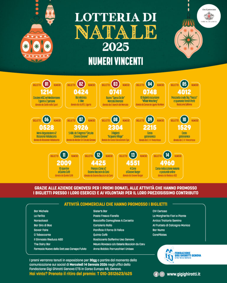 Partiamo con un immenso grazie per averci sostenuto con i biglietti, il vostro aiuto renderà possibile la nascita del nuovo Day Hospice a Genova, luogo di accoglienza, cura e ascolto dedicato ai pazienti e ai loro familiari.